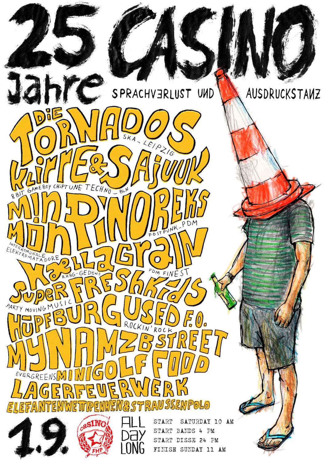 Am 01.09. schlagen die Uhren anders und das CASINO lädt deinen Körper mit all seinen Sinnen auf 25 Stunden kulturellen Hochgenuss, ganz nach unserem Motto “25 Jahre Sprachverlust und Ausdruckstanz”; ein. Ein Schelm wer dies verpasst!